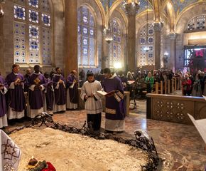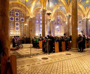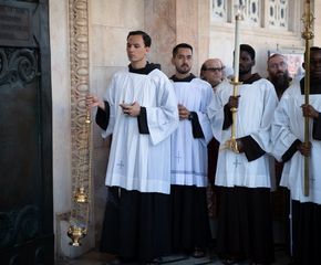 Somos os filhos de Francisco, cuidamos, por vontade de Deus, de um dos lugares mais queridos por Jesus: o jardim chamado GETSÊMANI. É um lugar único no mundo, o lugar onde o Senhor expressa o seu Sim para sempre, na disponibilidade a entrar onde ninguém nunca entrou, onde Jesus abisma-se nas trevas, cimenta-se na derradeira luta contra a morte, da qual, a humanidade, saiu sempre derrotada... Pedimos, também a vocês, de vir espiritualmente AQUI, neste lugar querido por Jesus, onde Ele vinha, freqüentemente, com seus discípulos. Nosso convite não é para fazer uma estéril memória, mas é um deixar-se alcançar por Ele, a fim de que “os muitos Getsémanis” que vemos espalhados em nosso mundo, sejam iluminados pelo mesmo Senhor, o qual alcança quaisquer situações. E é exatamente AQUI, neste jardim chamado Getsémani, que nós celebramos a HORA SANTA. Mas do que nasce aquilo que celebramos? Nasce exatamente daqueles momentos, dos últimos átimos da vida terrena de Jesus, nos quais estão envolvidos e interpelados, inclusive, seus discípulos. Como primeira coisa, devemos escutar de novo os Evangelhos. AQUI, naquela noite, aconteceu, cumpriu-se, aquela Hora... Debaixo da mesma lua, neste jardim chamado Getsémani, os Evangelhos condensam-se e contam, nos mínimos particulares, o que as oliveiras viram: o filho de Deus, o Mestre, sozinho, prostrado com o rosto na terra, suar sangue e rezar ao Pai. Nunca Jesus pareceu tão humano. Portanto: “noite”, “luta”, “solidão”, “oração”, “desejo”, e “oferta”, são coisas que, AQUI, Jesus vive. Todas estas, são características que indicam o aproximar-se de sua Hora, momento no qual Ele manifesta com intensidade, seu desejo profundo de amor e de partilha: “Fiquem aqui, orais comigo”. Escutando, de novo, este convite do Senhor, nós conseguimos entender o que o Mestre pediu a seus discípulos de então... A mesma coisa, pede, também, hoje, a nós... Portanto, como ENTÂO... Assim, AGORA.